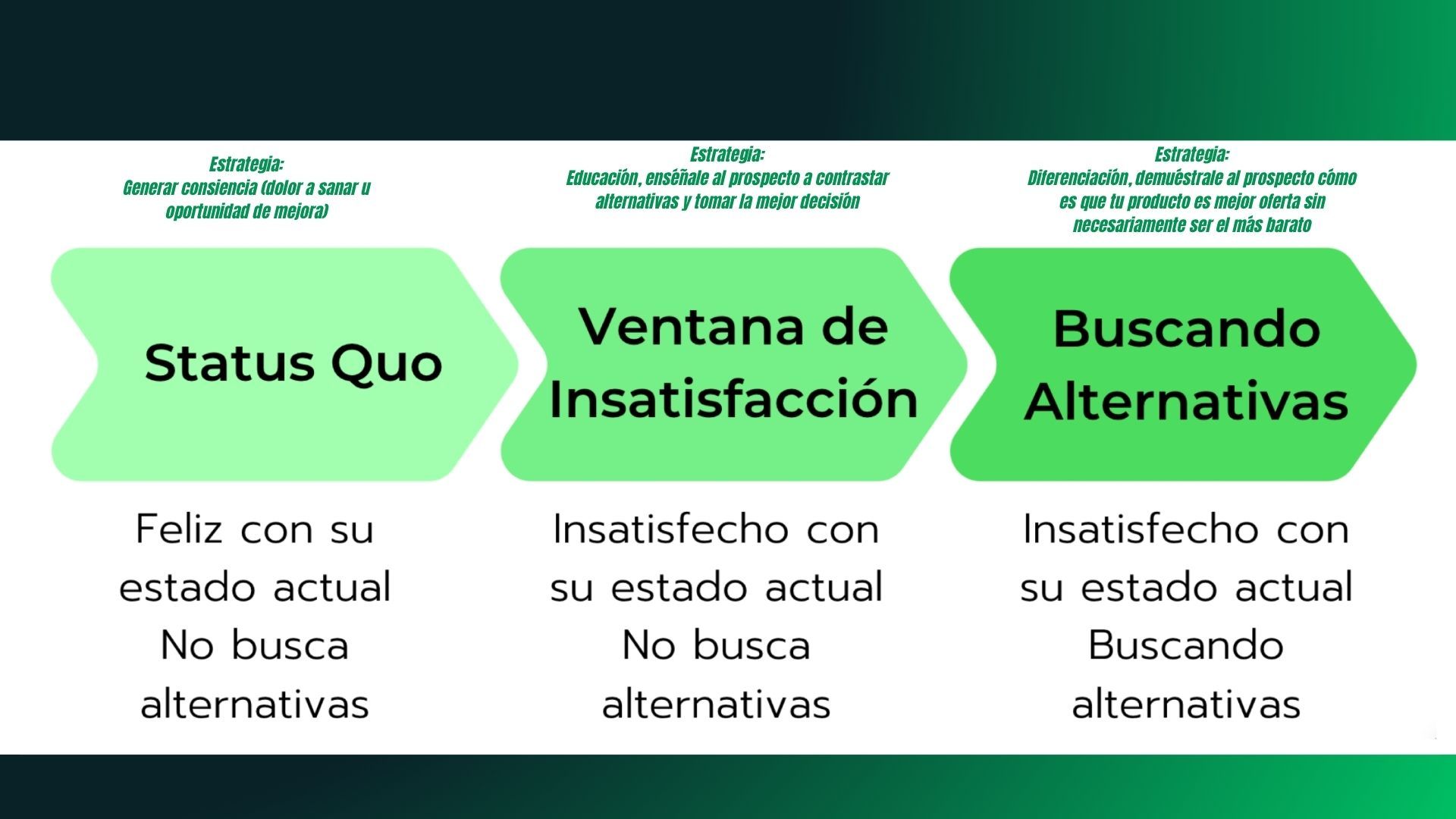 Estrategia: generar conciencia de mejora (hacerle ver que puede estar mejor o hacerlo más fácil).